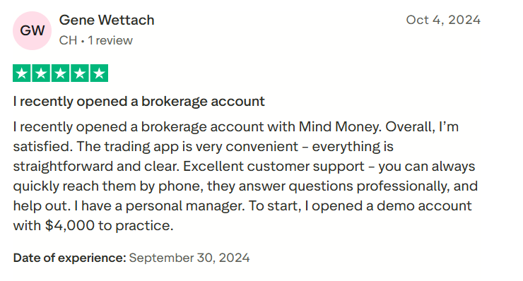 Mind Money демонстрирует зрелый подход к обслуживанию. В отличие от многих брокеров, здесь поддержка не ограничивается техническими вопросами. Консультанты готовы дать разъяснение по стратегии, тарифу, функциям интерфейса, инвестиционному планированию.
